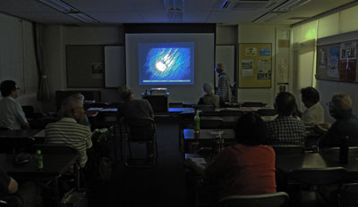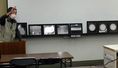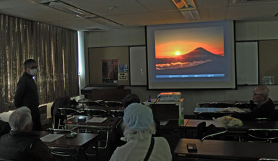 神社の南天、日本平からの富士、蓮の池、太陽の黒点など。それぞれの作品について作者の説明と会員からの質問や