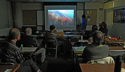 257号沿線の紅葉を捉えた作品が多く見られました。それぞれの作品を解説する中で、台湾人の大らかな気質や鳳来