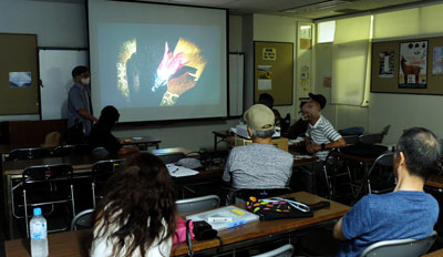 8月の定例合評会は20名の参加でした。今回はペーパーの作品はなく、全員がプロジェクターによる展示でし