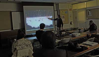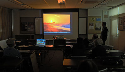 それぞれの作品を合評する中で、特需レンズによる画面効果、地上風景と夜空を同じ画面に捉えるテクニック、海