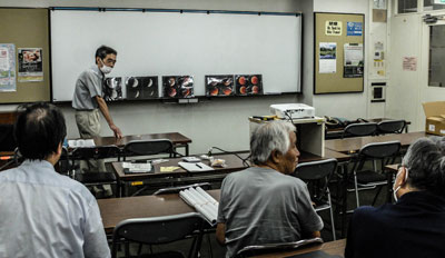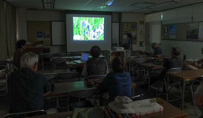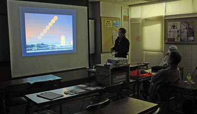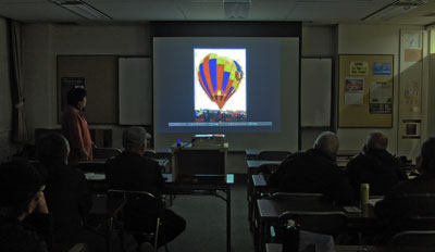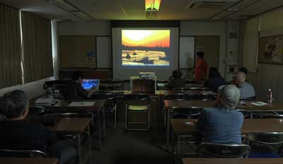 神社の南天、日本平からの富士、蓮の池、太陽の黒点など。それぞれの作品について作者の説明と会員からの質問や