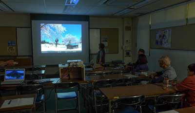 28月の日曜合評会は第1講座室で開かれました。今回は12名の参加でプロジェクターの展示が10名、ペーパー展示は